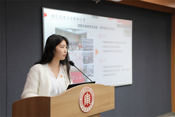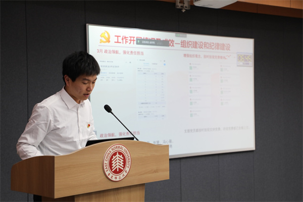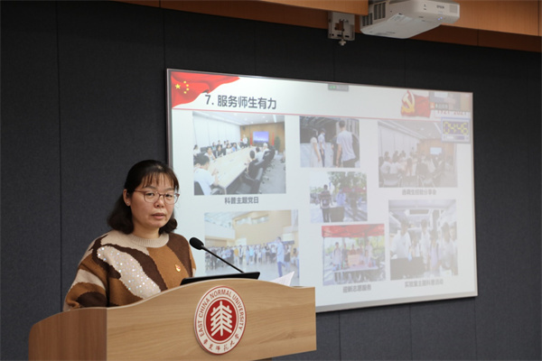 精密光谱科学与技术国家重点实验室2017级研究生党支部书记任心仪、2018级研究生党支部书记吴修齐、2020级研究生党支部王佳伟,学院2020级研究生第一党支部李树兵、2020级研究生第二党支部隋峰锐作为学生党支部书记代表进行现场述职交流。