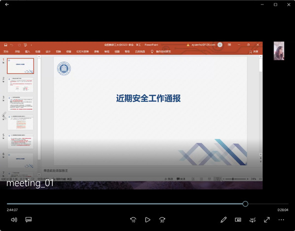 学院党委副书记蒋旭对近期学院安全工作和学生工作进行通报。她介绍了学校对特种设备安全检查要求和学院特种设备排查情况,并对封闭管理期间的实验室管理要求和师生们关心的问题进行了细致梳理和解答。