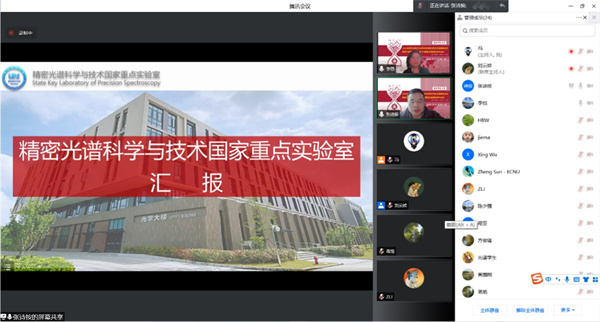 学院副院长武海斌、精密光谱国重实验室副主任张诗按分别对学院和国重实验室的历史沿革、研究方向、发展现状作介绍,并播放了宣传片,令与会学者对学院和实验室的发展、建设有了更加深入地了解。