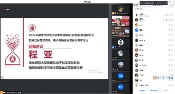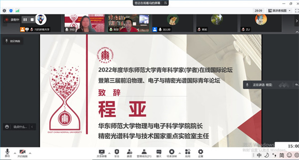 学院院长、精密光谱科学与技术国家重点实验室主任程亚对相聚云端的与会学者表示热烈欢迎。同时表示,青年是科技创新的未来,学院将为广大潜心钻研的青年学者打造自由宽松的科研环境,期待通过青年论坛广开进贤之路、广纳天下英才,携手海内外优秀人才,共创美好未来!