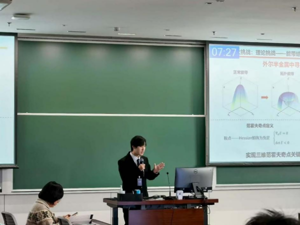 刘天雨提出的《是否存在三维范霍夫奇点?》引发评审专家高度关注。范霍夫奇点是能带结构中态密度发散的关键特征,刘天雨通过理论推导并大量查阅文献,大胆提出三维拓扑能带下范霍夫奇点的全新物理图像,其作答方案《拓扑材料中寻找三维范霍夫奇点的新尝试》不仅构建了实现三维范霍夫奇点的理论方案,还设计并初步完成了相关实验。