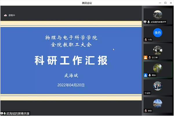 学院副院长武海斌通报了近期学院科研项目的申报情况,再次强调国家自然科学基金近期申报指南,并对疫情期间的科研工作注意事项进行了提示说明。