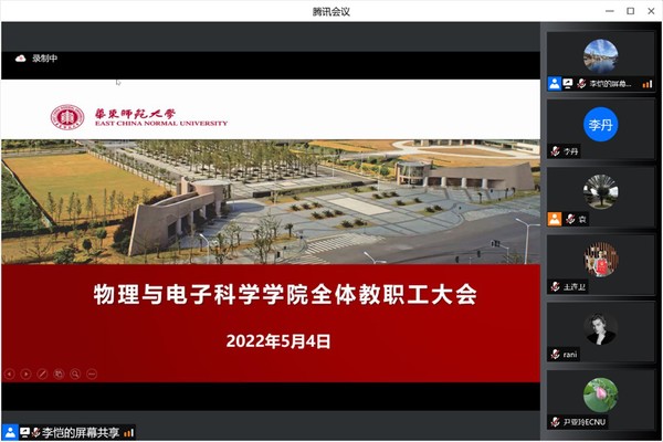 学院院长、精密光谱国重实验室主任程亚在总结发言中,对在校内坚守抗疫一线的教职员工表示感谢,要求全院教师在抗疫形势向好的大环境下,继续严格遵守学校防疫政策,克服困难,充分准备,发挥个体积极性,利用现有条件,努力完成教学、科研等刚需任务。