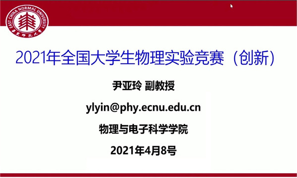 4月8日晚,物理实验教学中心以在线方式召开2021年全国大学生物理实验竞赛(创新赛)备赛工作启动会。物理实验教学中心主任詹清峰、竞赛指导教师团队及参赛同学与会,启动会由物理实验教学中心副主任尹亚玲主持。