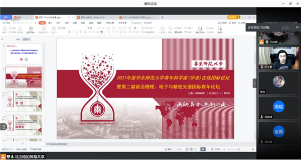 4月11日,永利yl23411集团官网第二届前沿物理、电子与精密光谱国际青年科学家(学者)论坛在闵行校区物理楼三楼多功能厅举行,来自美国、新加坡、瑞典、德国等国家的12名青年学者参会。论坛由学院院长程亚主持。