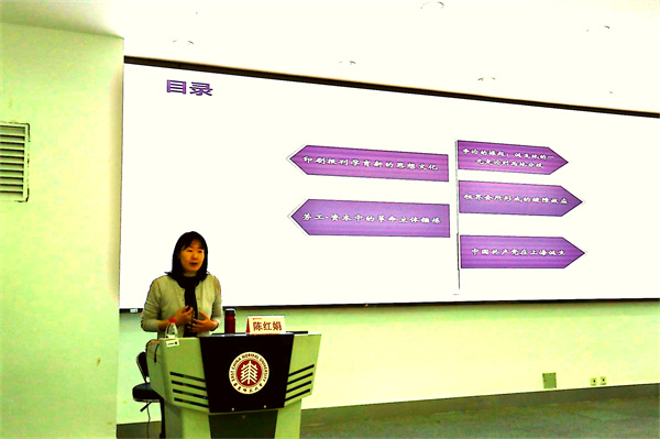 开班仪式后,马克思主义学院教授、博士生导师,上海市习近平新时代中国特色社会主义思想研究中心基地副主任陈红娟作首场专题报告《近代上海与中国共产党的诞生》。陈红娟聚焦“中国共产党的诞生地为什么是上海”“中国共产党在上海诞生的重要意义”“中国共产党在上海诞生的历史进程”三大核心问题,从“党的诞生地的一元定论到两地分歧”“印刷报刊业发展孕育新思想文化”“上海租界会所形成缝隙效应”“劳工-资本中的革命主体锤炼”四个方面阐述了上海与中国共产党的诞生。陈红娟表示,上海是一座流淌着红色血脉的城市,中国共产党在上海诞生、发展、壮大的历史不容易、不简单、不寻常,期待同学们从党的历史中汲取力量,从理论溯源中坚定信念,从实践探索中收获成长,实现心怀信仰,学有所成。