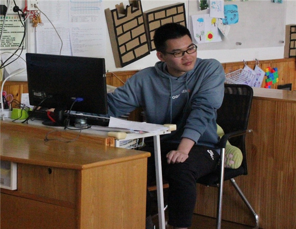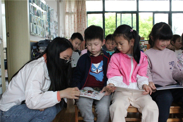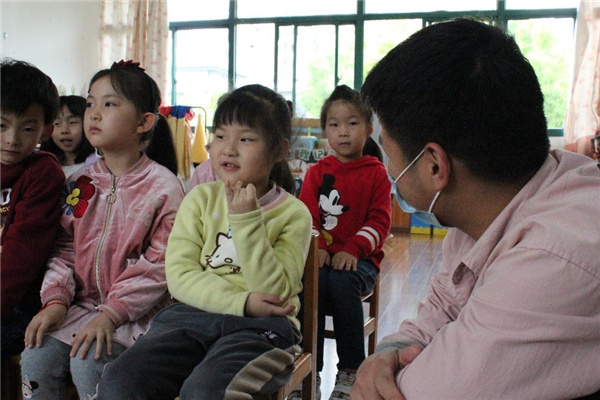 志愿者与小朋友交流