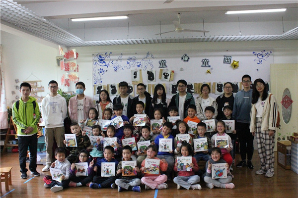 志愿者与小朋友们合影