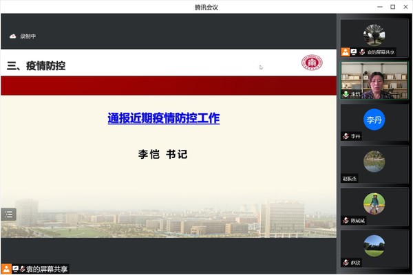 李恺分析了近期疫情防控情况,详细介绍学校、学院在疫情防控常态化下的毕业就业、教学科研、后勤管理、安全保卫和物资保障等方面的要求,并对近期教职工进出校管理的工作提示作补充说明。李恺表示,历经3个月的艰苦奋战,学校疫情防控取得了重要的阶段性成果,我们要继续保持防控责任意识不松懈,时刻绷紧疫情防控“安全弦”,开启“常态化”奋战模式,奋力实现疫情防控和学校事业发展两手抓、两手硬、两手赢。