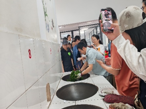 随后,老师们还向碧螺春非遗传承人学习了碧螺春的炒制方法。通过观察茶叶形态、了解茶树生长习性、学习采茶技艺、体验“三炒三揉”的制茶过程,老师在沉浸式的制茶修习中,感悟中华茶文化的魅力。