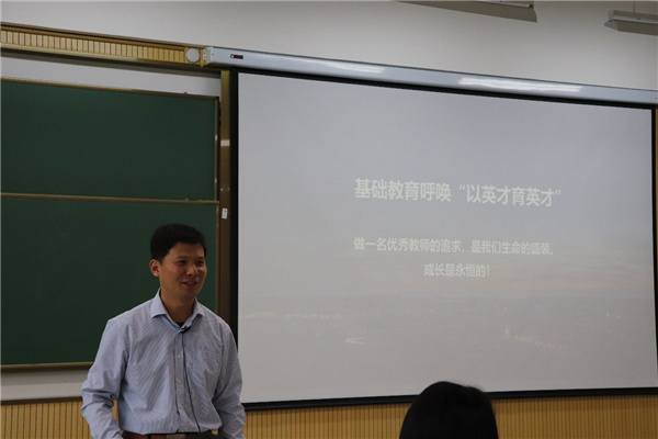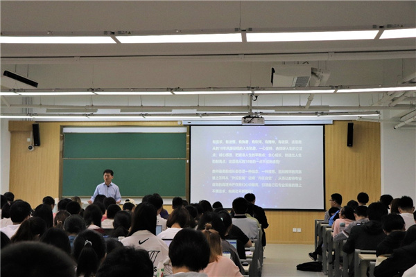 随后,韩燕用物理学中的牛顿第三定律巧妙比拟三条做好教师的方向,阐述了做教师应该具备的品质与能力。他鼓励未来教师学会跳出舒适圈,并以教师发展的三阶段:从“教学技能(经师)”,到“教学风格(能师)”,再到“教学境界(人师)”,分享了教师会经历的心路历程:追求、迷惘、执着、坎坷、播种、收获,他谈到,“教师最美的成长姿态是一种信念,一种理想”。
