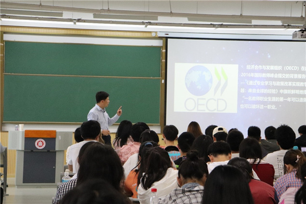 讲座伊始,韩燕以顾泠沅教授的名言“名师的产生是追求卓越的结果”切入,分享了从教以来的成长感悟和相关经验,勉励未来教师们要敢于追求卓越。他谈到,每个人都需要“认识你自己”,清楚认识自己的位置,认识自己的方位,这样才能离成功更近一步。