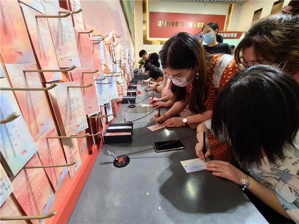 6月8日、9日,电子系教工党支部,2019级研究生第一、第二党支部分别组织党员至中共一大纪念馆开展支部党史学习活动,学习建党初期中国共产党在上海的革命实践,深入了解中国共产党的诞生历程。在展览馆的尽头,“有话对党说”活动激发了支部党员的参与热情,纷纷提笔在卡片上写下对党的美好祝愿。