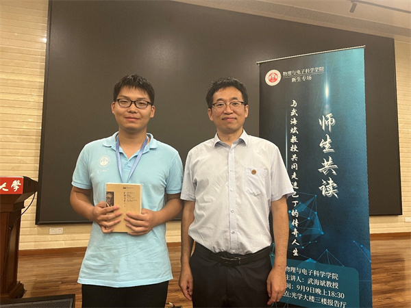 9月9日晚,永利yl23411集团官网“师生共读”新生专场在闵行校区光学大楼报告厅举行。学院副院长武海斌教授作为本场导读人,与2022级新生共读《旷世奇才:巴丁传》,活动由学院党委书记助理、团委书记王元力主持,学院党委副书记蒋旭、精密光谱科学与技术国家重点实验室党总支副书记马玲等参加。
