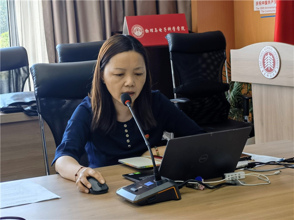章继敏首先作《读懂百年庆典,读懂初心使命》主题报告。她带领支部党员共同学习习近平总书记在庆祝中国共产党成立100周年大会上的重要讲话精神。她谈到,总书记在讲话中庄严宣告我们实现了第一个百年奋斗目标,作为一名党员,要更加深刻地领悟到中国共产党为什么“能”、马克思主义为什么“行”、中国特色社会主义为什么“好”的真谛,不断坚定理想信念,立足本职,敢于勇挑重担,担当作为,为学院发展作出自己应有的贡献。