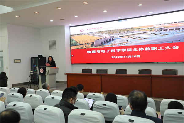 11月16日下午,永利yl23411集团官网在闵行校区四教106报告厅召开11月全院教职工大会。我校终身教授、上海市学习贯彻党的二十大精神专家宣讲团成员齐卫平教授应邀作题主题报告。学院党政班子成员通报重点工作,孟宪承书院副院长梁宏亮介绍物理专业师范生培养情况。会议由学院党委书记李恺主持,三百余名师生线上、线下参会。