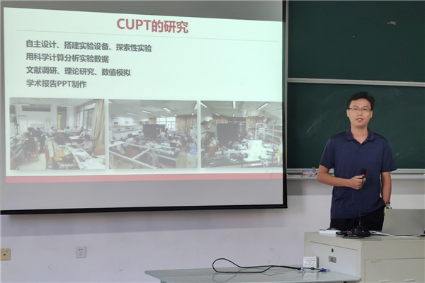 随后,支部邀请中国大学生物理学术竞赛(CUPT)指导教师夏成杰,为新生详细介绍了CUPT的基本情况以及历届同学取得的优异成绩,鼓励师范生踊跃参加、磨炼毅力,逐步进入科研训练。