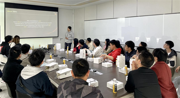 师生还观看了哲库公司的文化短片,并参观了公司的健身房、荣誉室、食堂,近距离感受哲库员工的工作环境。公司面试官李送杰着重介绍了公司的企业文化及公司“引领者计划”,同时邀请同学们加入哲库科技,共同为我国的半导体事业发展做出贡献。