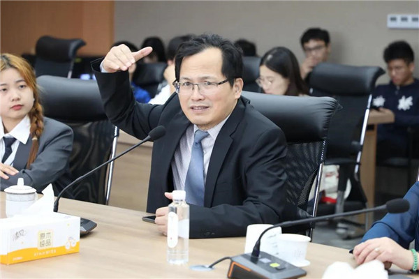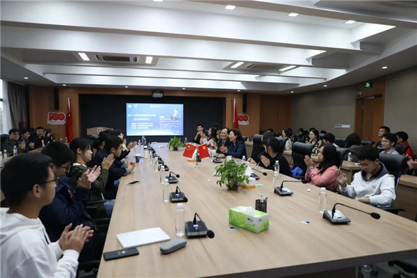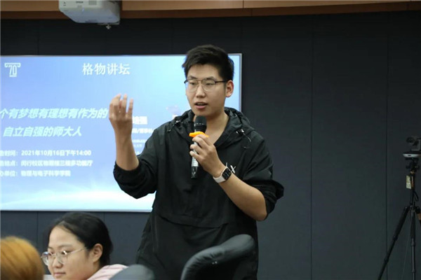 “物华石”捐赠仪式后, 杨培强做客学院“格物讲坛”,作题为“做一个有梦想有理想有作为的自立自强的师大人”的创业经历分享主题报告,报告会由学院党委书记李恺主持。
