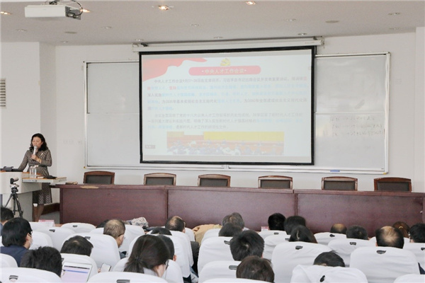 随后,全体教职工认真学习2021年中央人才工作会议精神。李恺谈到,习近平总书记在中央人才工作会议上发表重要讲话,首次系统概括提出了新时代人才工作“八个坚持”,全体教师要认真学习会议精神,瞄准“加快建设世界重要人才中心和创新高地”的战略目标,结合岗位工作为培养未来的战略科学家和一流科技领军人才作贡献。